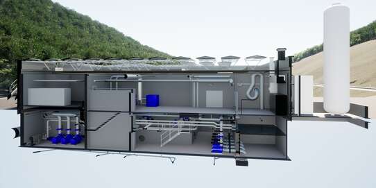 • Neubau eines Gebäudes mit Hebewerk, Ozonreaktor und Sandfiltration sowie den zugehörigen Betriebsräumen