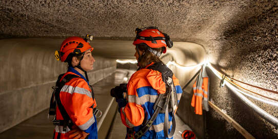 Zusätzlich werden neue Einstiege im Gleisbereich erstellt, was eine enge Zusammenarbeit mit der SBB erfordert. Die Sanierung startete anfangs Jahr 2025 und dauert rund zwei Jahre. Um die Kanäle trockenzulegen, wird das Abwasser durch den jeweils parallel verlaufenden Abwasserkanal umgeleitet. Ein im Kanal eingebautes Abschottungs- und Alarmierungssystem ermöglicht die Arbeiten in jeweils einem Kanalstrang bei trockener Witterung. Aufgrund der auch bei Trockenwetter sehr hohen Abwasserstände wird der Kanal bereits bei kleinen Regenereignissen geflutet. Aktuell sind die Sanierungsarbeiten im linken, rechteckigen Kanalstrang (4.0 x 2.1 m) im Gange. Das schadhafte Betongefüge wir mittels Wasserhöchstdruck abgetragen und mit einem abwasserbeständigen Sanierungsmörtel reprofiliert. Einige Kanalabschnitte werden mittels Zulage von Bewehrung statisch verstärkt. Die Sanierungsmassnahmen verlängern die Nutzungsdauer der Kanäle um rund 50 Jahre.
