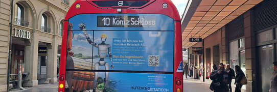Nach rund drei Monaten Bauzeit war es im Herbst 2024 geschafft: Die Sanierung der Trinkwasserleitung entlang der Schwarzenburgstrasse in Köniz wurde planmässig und erfolgreich abgeschlossen. Die stark befahrene Verkehrsachse verläuft direkt am beliebten Liebefeld Park – entsprechend anspruchsvoll war die Umsetzung unter laufendem Verkehr. In diesem Jahr folgte nun wie geplant der Deckbelag. Und heute fährt ein BERNMOBIL-Bus mit unserem Hunziker Betatech-Logo (und Plix) genau auf dieser Strecke – … wir finden: ein schönes Symbol dafür, wie sichtbar unsere Arbeit wird, wenn man mit offenen Augen durch die Stadt fährt.
