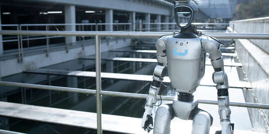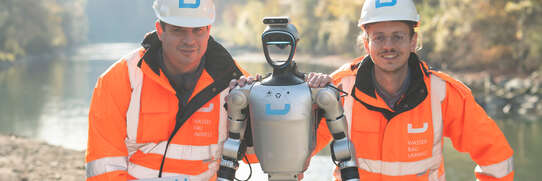 Der humanoide Roboter Plix ist kein Showobjekt. Er lebt im Swiss Cobotics Competence Center in Biel und trainiert dort täglich: balancieren, sehen, hören, reagieren. Für uns ist er seit Anfang 2025 ein reales Versuchsfeld, um zu verstehen, was moderne Robotik heute leisten kann. Bei seinem Besuch in Bern war er auch auf der ARA Worblental zugegen und wagte dort seinen ersten Rundgang im Freien. David Weder von SCC ist zufrieden mit seinem Schützling: «Ich muss zugeben, ich war schon etwas nervös. Aber er hat dies gut gemeistert.» Plix lief und balancierte unter anderem gekonnt über die unebene Kiesflächen (- siehe Film unten). Vielleicht wird Plix irgendwann noch mehr tun: Regenbecken inspizieren, Schadstellen dokumentieren, Messdaten liefern aus Bereichen, in die Menschen nur schwer gelangen. Wir sind gespannt… sind uns aber bewusst, dass es dazu noch viel Programmierarbeit und Training benötigt.