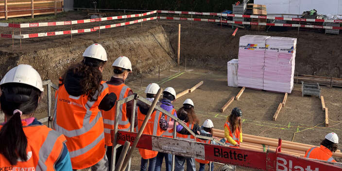 Die 16 Mädchen starteten ihren Tag mit einer Exkursion zur Baustelle des MFH Brunnenwies in Attikon. Vor Ort warfen sie einen Blick in die Baugrube, setzten sich mit Schalungs- und Bewehrungsplänen auseinander und durften selbst aktiv werden, indem sie fleissig Nägel in ein Brett schlugen. Am Nachmittag entdeckten sie bei einem Postenlauf die Welt der 2D-Pläne und 3D-Modelle, entwarfen einen Bauablauf und bauten zum Abschluss ihr eigenes Kartonmodell des Gebäudes.