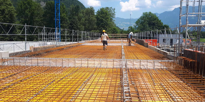 Aber noch Weiteres ist im Gange: nebst den Umbauarbeiten auf der ARA wird parallel der Anschluss der ARA Wartau an die ARA Sargans vorbereitet. Und das neue Biologiebecken erhält ein Solarfaltdach! Apropos… Nachhaltigkeit ist uns und auch unserem Bauherrn wichtig! Wir haben zum Beispiel den bestehenden Stahlbau vom Sandwäschergebäude versetzt. Dieses Gebäude wird neu als Werkstatt genutzt. Dadurch musste kein neues Gebäude erstellen werden. Auch bei den Submissionsvergaben war Nachhaltigkeit jeweils ein Zuschlagskriterium.