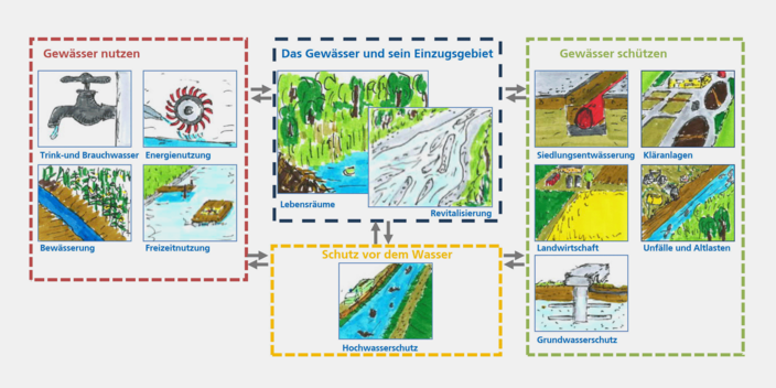 Vielleicht, doch all das darf kein Grund zum Zurücklehnen sein, im Gegenteil: Die Biodiversität der Gewässerlebensräume nimmt ab, die Sicherstellung der Wasserqualität im Oberflächen- und Grundwasser bleibt eine Daueraufgabe, 4000 km Fliessgewässer und Seeufer sind zu revitalisieren, der Nutzungsdruck auf Wasserressourcen und Naturräume steigt. Auch der Klimawandel wird die Probleme weiter anheizen. Aber was ist in einem Gebiet das Dringendste? Welche Investitionen haben das beste Kosten-Nutzen-Verhältnis? Wie können Kompromisse gefunden und Zielkonflikte gelöst werden?