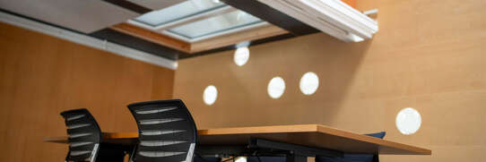 Am Anfang stand ein Bedürfnis: Der offene Raum, der mehrere Sitzungsgelegenheiten bot, war schlicht zu laut. Gespräche fielen schwer, die Konzentration litt. Wir wollten das ändern – und eine ruhige Sitzungsoase gestalten. Nicht aus neuen, sondern aus bestehenden Materiali­en. Ist dies möglich? Gemeinsam mit der Firma Roto entwickelten wir ein Konzept – ganz im Sinne des ReUse-Gedankenguts.