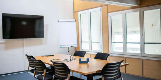 Ein paar Monate später haben wir nun ein einzigartiges Sitzungszimmer, in dem wir in Ruhe und ungestört Besprechungen durchführen können. Die Schalldämmwände stammen aus einem ehemaligen Radiostudio des SRF, die Fenster aus einem Rückbauprojekt in Zürich, und selbst die runden Waschmaschinen-Bullaugen erhielten hier eine neue Funktion. Die Ein­gangs­türe fand ihren Weg aus Neftenbach in unser Büro.