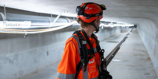 Unter dem Gleisfeld bei der Duttweilerbrücke in Zürich werden zwei Mischabwasserkanäle saniert. Die beiden parallel verlaufenden Kanäle unterqueren den rund 280 Meter breiten Gleisbereich und leiten das Abwasser aus den Kreisen 2, 3, 4 und 9 in Richtung der Kläranlage Werdhölzli. Im Auftrag von ERZ Entsorgung + Recycling planen, koordinieren und begleiten wir die Sanierung der insgesamt über einen Kilometer langen Kanalstrecke. Nun ist der erste der beiden Mischabwasserkanäle erfolgreich saniert und bereits in Betrieb genommen. Ein einzigartiger Einblick: