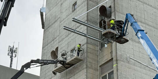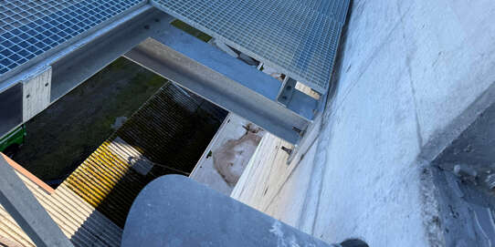 Für die Getreidecenter Freiamt AG in Wohlen durften wir eine technisch anspruchsvolle Speziallösung planen und realisieren... Ein Stahlpodest, befestigt in rund zwölf Metern Höhe direkt an den Betonwänden eines bestehenden Getreidesilos, trägt heute einen rund 24 Tonnen schweren Luftwäscher!