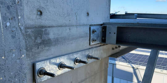 Die Verbindung zwischen Stahl und Beton erfolgte über speziell ausgelegte Ankersysteme. Planung, statische Berechnungen und Ausführungspläne entstanden in enger Zusammenarbeit mit dem Metallbauer, bevor dessen Team die Stahlteile fertigten und in luftiger Höhe das Stahlpodest montierten.