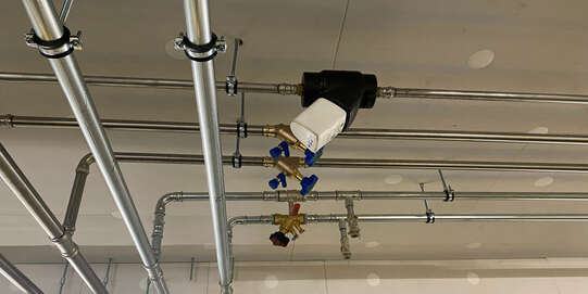 Für den hydraulischen Abgleich in der Zirkulation kommt das Hycleen Automation System der Firma +GF+ zum Einsatz. Dieses System steuert die warmzuhaltende Installation zentral über einen Master sicher und komfortabel. Das automatisierte Zirkulationsregelsystem gewährleistet einen harmonischen und zuverlässigen Betrieb der gesamten Installation. Alle Systemdaten können über den Master gesteuert, protokolliert, ausgewertet sowie auf einem Touchscreen visualisiert und überwacht werden. Statusinformationen und ungewöhnliche Ereignisse werden zusätzlich per Push-Benachrichtigung gemeldet.