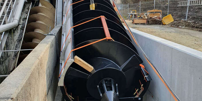 Die Schnecke erhöht die Betriebssicherheit und wird zukünftig die zwei bestehenden Aggregate bei deren Arbeit ergänzen. Die Planung und der Einbau waren "nicht ohne". So sind die Platzverhältnisse eng und es musste eine stimmige hydraulische Problemlösung erarbeitet werden. Hunziker Betatech ist der Gesamtplaner dieses Projekts.